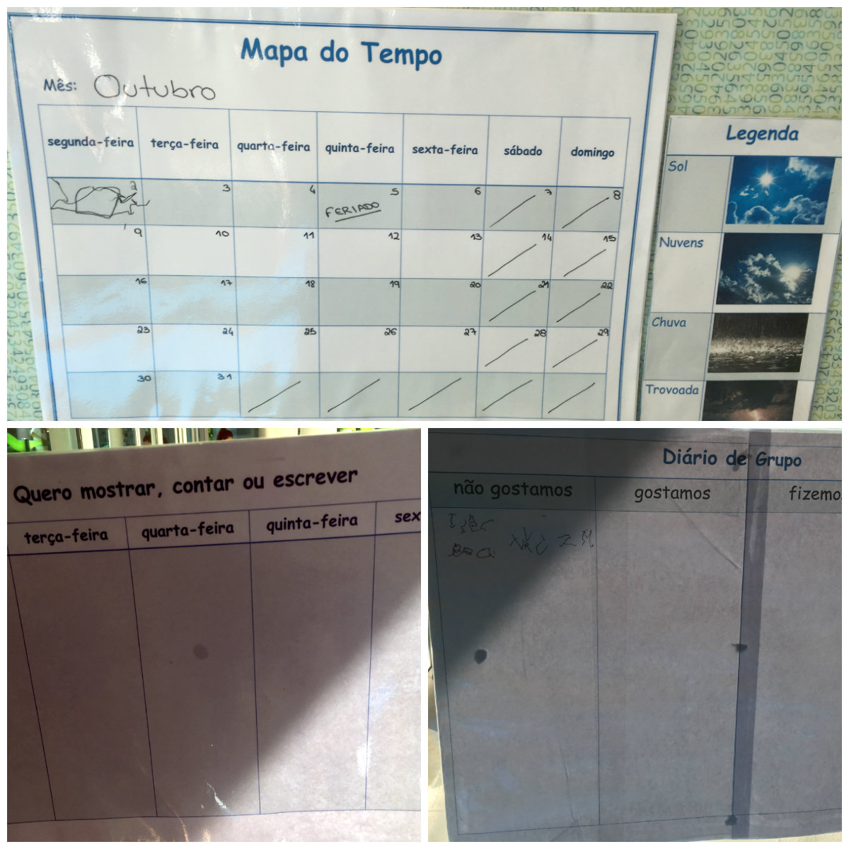 Os nossos instrumentos de trabalho na sala dos 3 anos